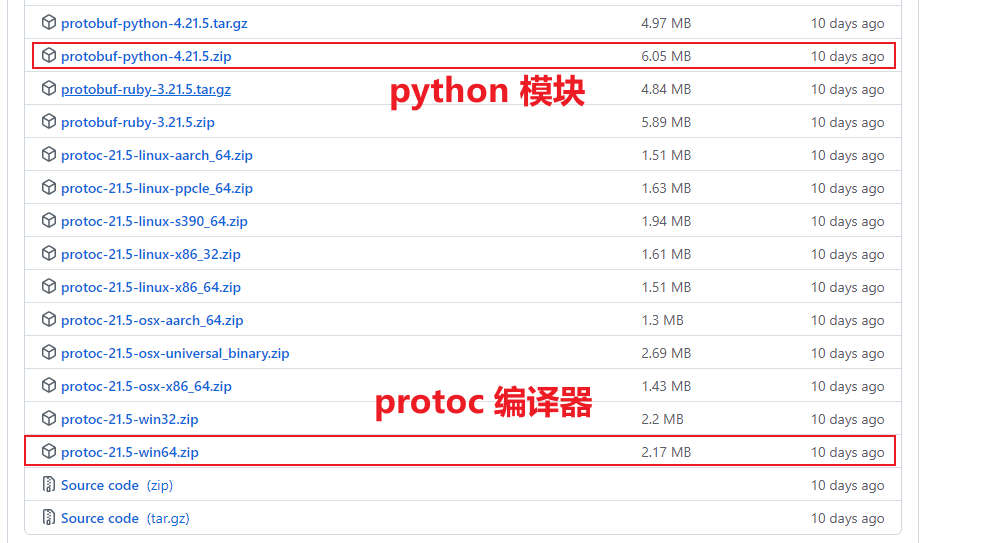 protobuf 模块及编译器 protoc 下载地址:protobuf 模块及编译器下载地址,以上两个都需要下载安装: