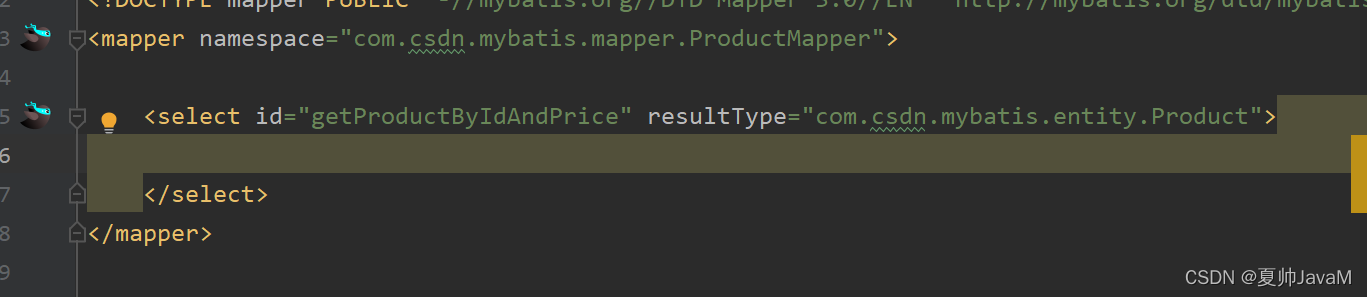当我们进入mapper配置文件,也可以点击左侧的小鸟 进入到与其对应的mapper接口。