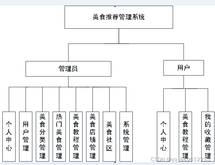 (2)用户:首页、个人中心、订单评价管理、美食分享管理、我的收藏管理等功能。