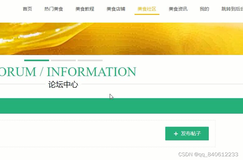 (3)前台首页:首页、热门美食、在线商城、美食分享、用户交流、美食资讯、个人中心、后台管理、购物车、在线聊天等功能。