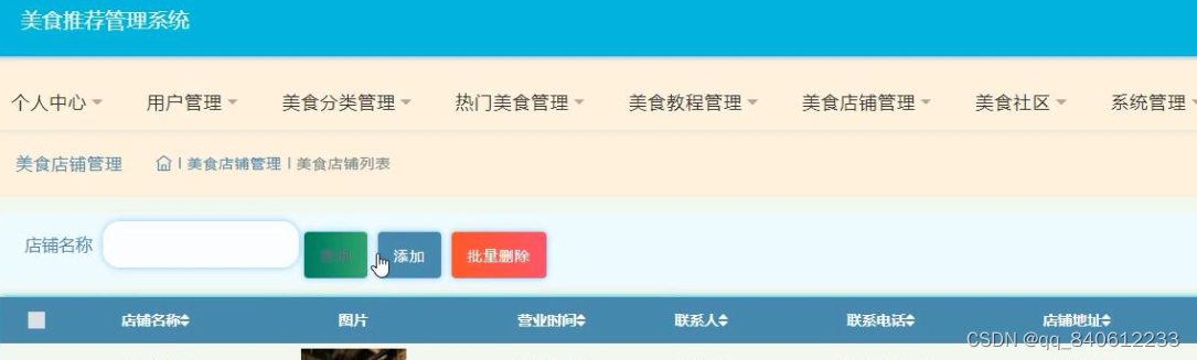热门美食管理,在热门美食管理页面中可以填写美食名称、美食分类、图片、地区、口味、特色、视频等信息,并可根据需要对已有热门美食管理进行修改或删除等操作