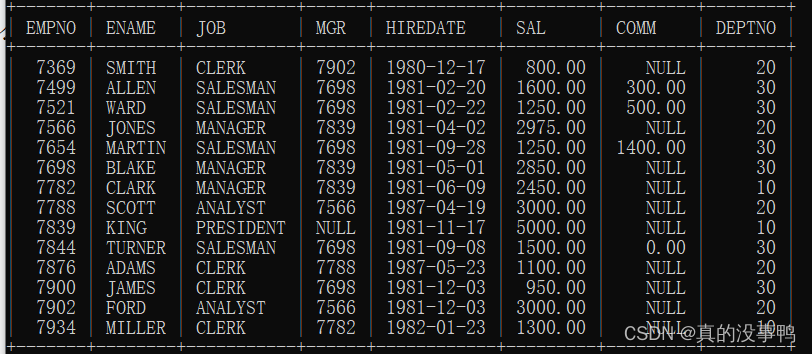 | EMPNO | int | NO | PRI | NULL | |员工编号