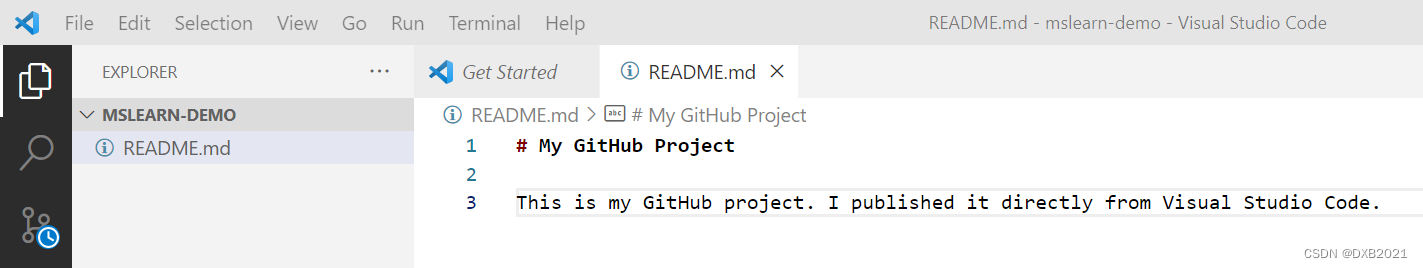 通常,必须先在 GitHub 上创建一个存储库,然后才能发布代码。 Visual Studio Code 允许你在编辑器中直接执行此操作。 以下步骤将帮助你创建一个新项目,然后通过 Visual Studio Code 将该项目发布到 GitHub。