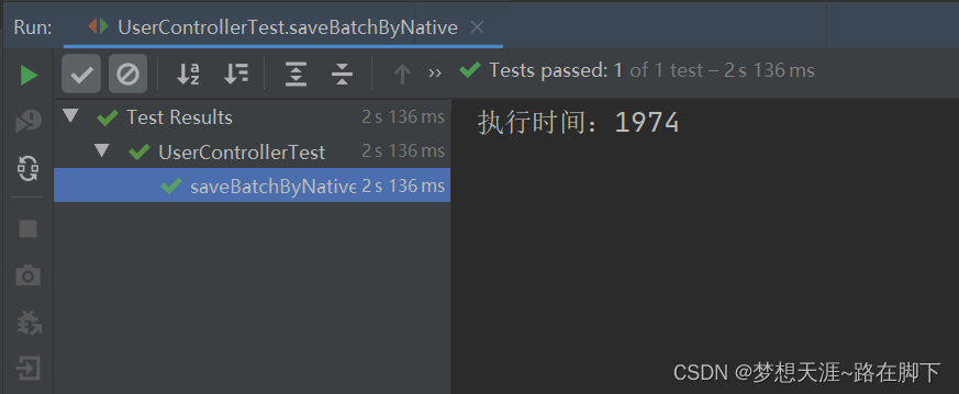 经过以上步骤,我们原生的批量插入功能就实现的差不多了,接下来我们使用单元测试来查看一下此方法的执行效率。