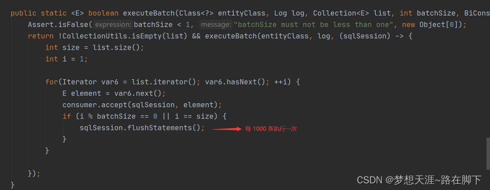 从上述源码可以看出,MP 是将要执行的数据分成 N 份,每份 1000 条,每满 1000 条就会执行一次批量插入,所以它的性能要比循环单次插入的性能高很多。