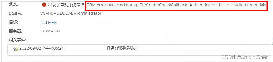 --> msg = "A general system error occurred: PBM error occurred during PreCreateCheckCallback: Connection refused"