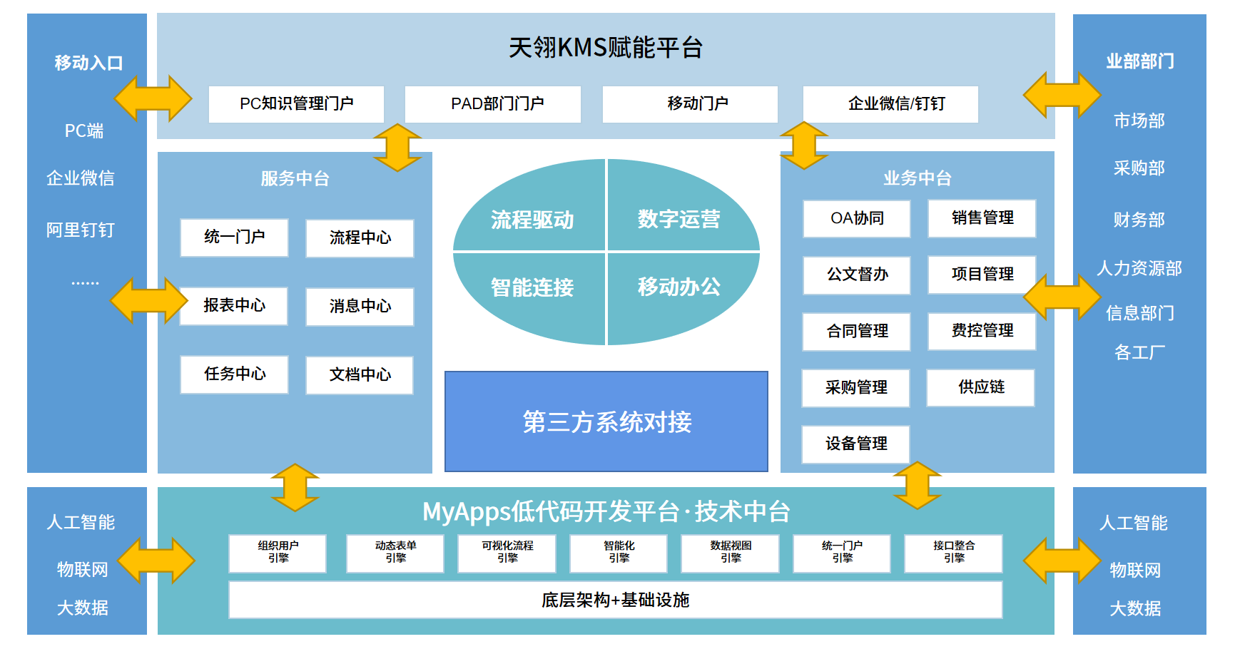 天翎三位一体的闭环解决方案,除了能够支持平台私有化部署外,还能让企业中的资讯与知识,透过获得、创造、分享、整合、记录、存取、更新、创新等过程,不断的回馈到知识系统内,让知识沉淀加以复用,有助于企业做出正确的决策,以适应市场的变迁。