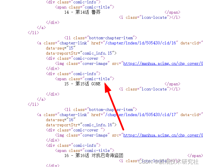 很显然,分集标题都在comic-title的class里面,所以我们就需要对这个标签进行提取操作,