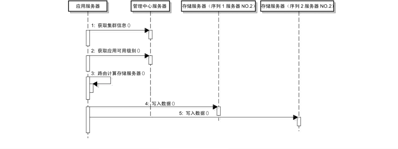 SDK 根据这些信息以及刚才的路由算法,进行路由计算,计算在每个分组序列的服务器集群上要访问哪一台服务器。根据计算出来的结果,在每个序列中访问对应的服务器,比如说当前的可用性级别是 2,那么就访问这两个序列中的两台服务器,分别对每个序列中的每台服务器进行并发的数据写入,保证数据至少有两个备份存储。
