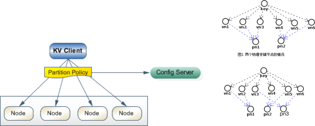 同时这种算法在运维上有一个更大的好处,就是集群扩容的时候,运维调整可以按照虚拟节点进行调整,因为是以虚拟节点为单位重新映射到新的物理节点上。如果存储的时候就是按照虚拟节点为单位进行的存储,比如说一个虚拟节点一个文件,那么进行集群扩容的时候,只需要将虚拟节点对应的文件拷贝到新的服务器上,就可以实现集群扩容了。