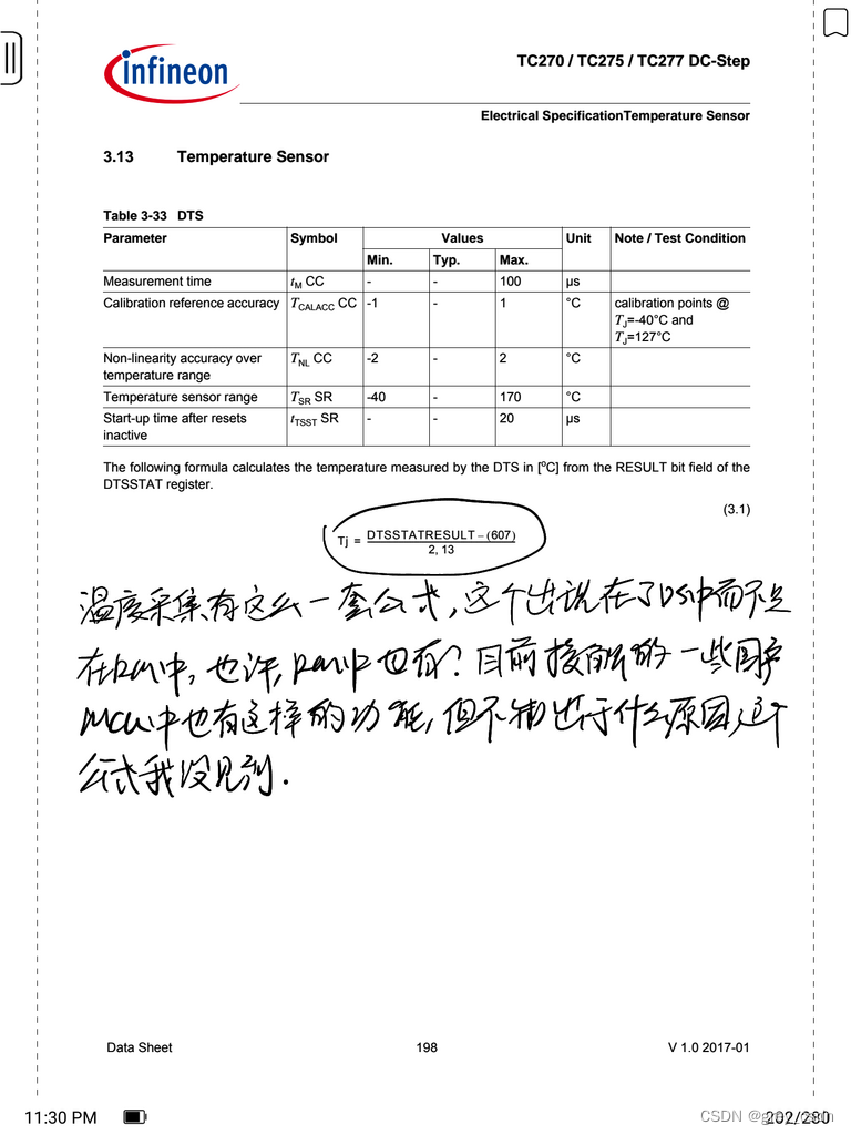 温度的采集转换其实是有一个公式可以用的,这个居然出现在了DS中而不是RM中。