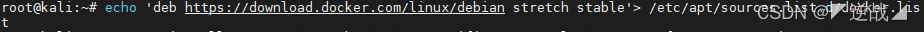 echo ‘deb https://download.docker.com/linux/debian stretch stable’> /etc/apt/sources.list.d/docker.list