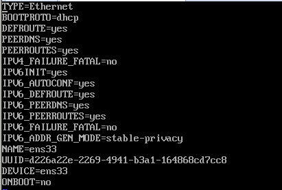 虽然CentOS 7已经可以联网,还需要学会手动给CentOS 7设置IP地址。在日常的运维工作中,我们是需要手动给Linux系统设置IP地址的。输入如下命令:# vi /etc/sysconfig/network-scripts/ifcfg-ens33