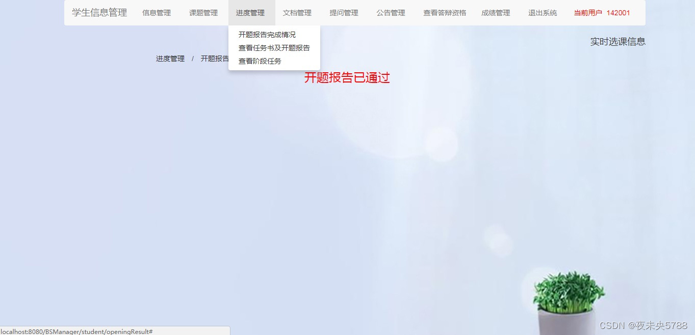5、学生角色包括个人信息管理、课题管理、进度管理、文档管理、提问管理、查看答辩资格、成绩管理