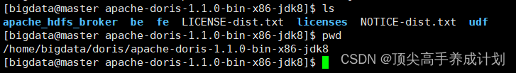 - export DORIS_HOME=/home/bigdata/doris/apache-doris-1.1.0-bin-x86-jdk8