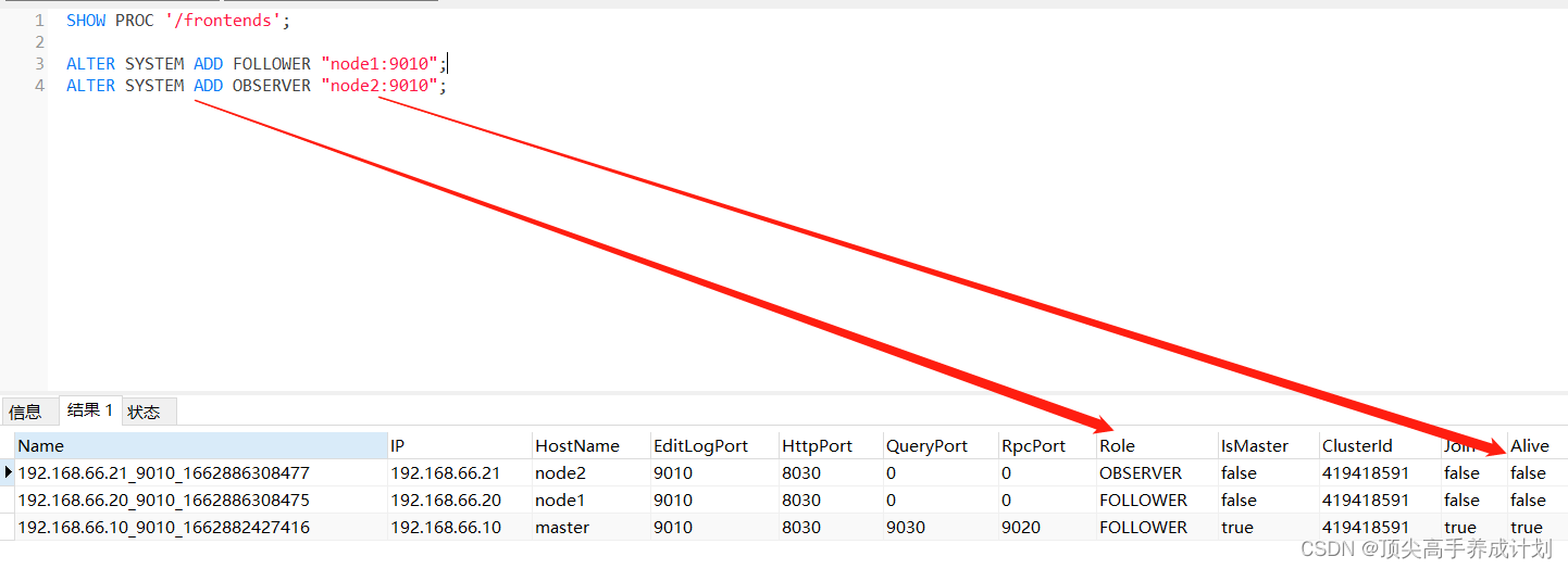 - ALTER SYSTEM ADD FOLLOWER "node1:9010";