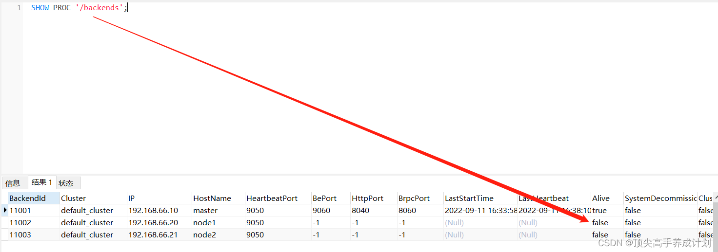 - ALTER SYSTEM ADD BACKEND "node1:9050";
