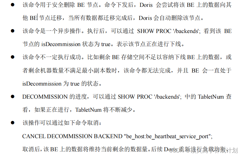 ALTER SYSTEM DECOMMISSION BACKEND "be_host:be_heartbeat_service_port";