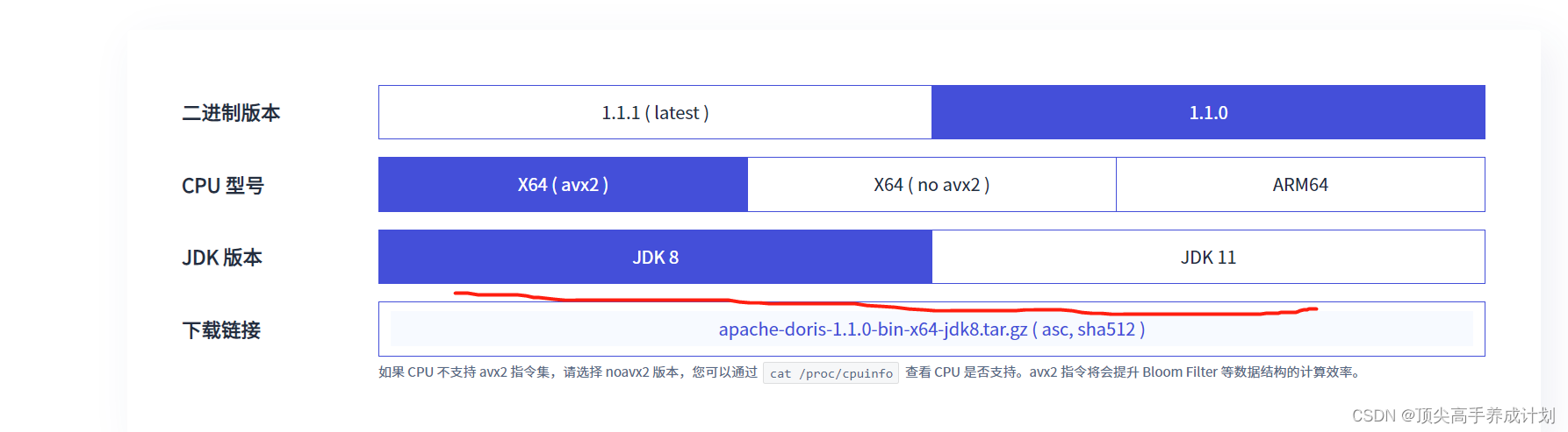 tar -zxvf apache-doris-1.1.0-bin-x86-jdk8.tar.gz