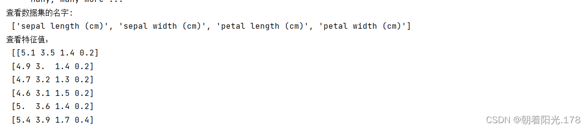 - print("查看数据集的名字:\n",iris.feature_names)