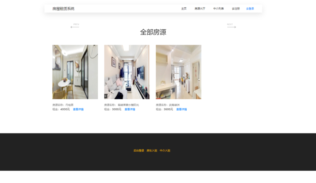 项目简介:主要是租客可以在网站上浏览合适的房源预约中介进行看房,然后价格合适从而进行租赁,房东可以发布房源,管理自己的房源,管理员通过以后可以浏览该平台的所有房源,中介对于租客的预约看房请求进行审核,同意之后就可以进行联系房东看房,管理员拥有最高权限。
