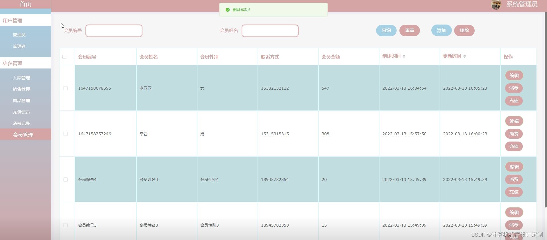 会员管理界面如下图所示。