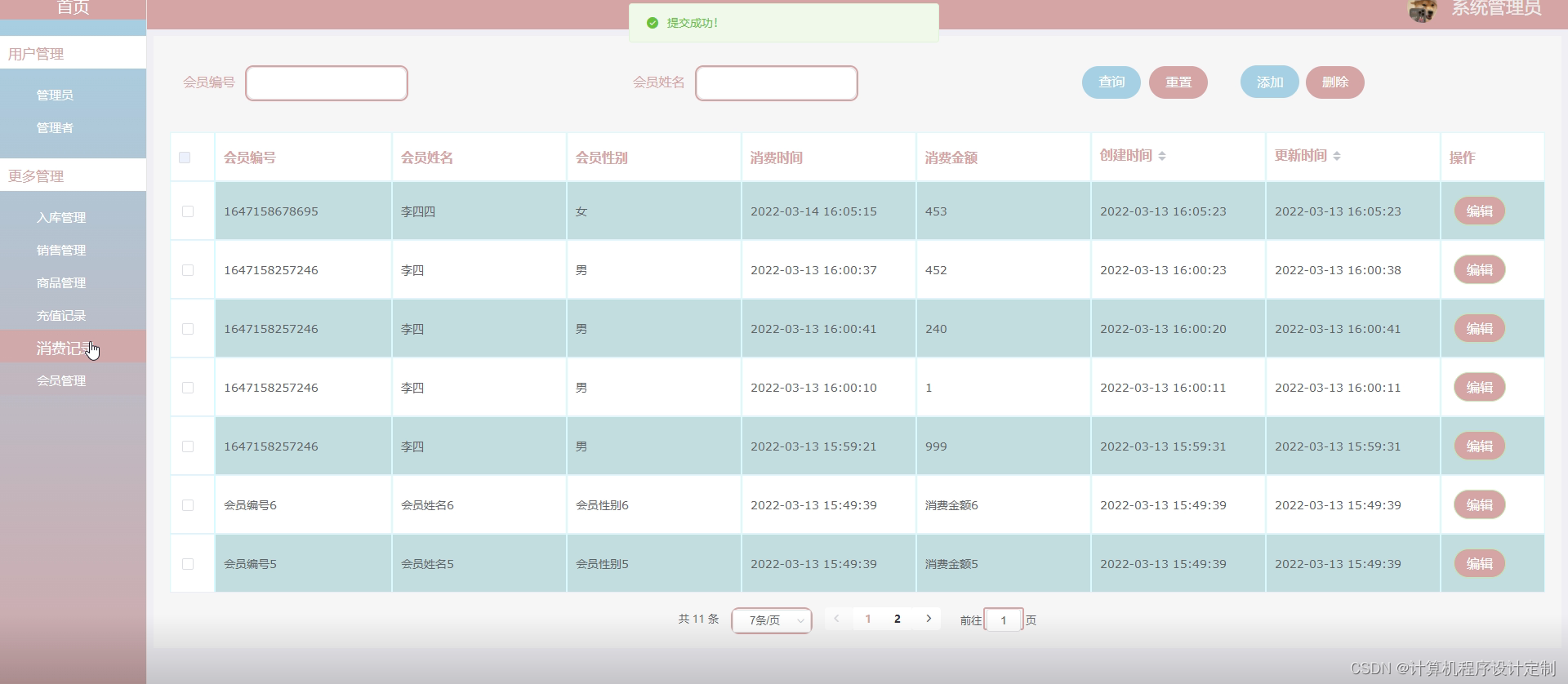 消费记录管理界面如下图所示。