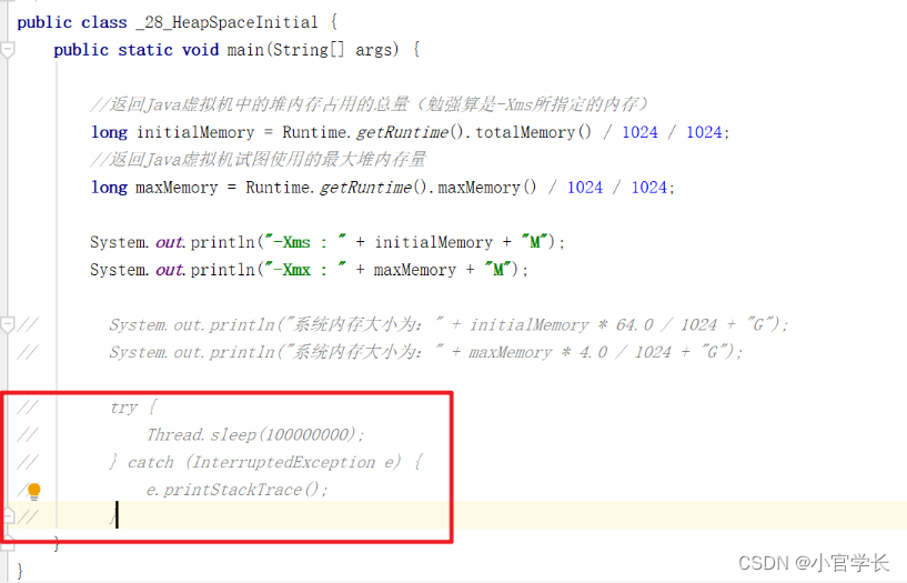 - // 为了方便查看堆内存中对象个数,线程sleep