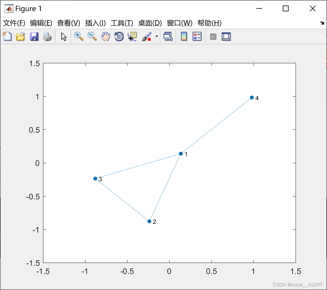最小生成树算法主要是cruskal和prime,这里具体的理论不在赘述,需要看理论的自行百度即可,这里演示matlab工具箱实现生成最小生成树。