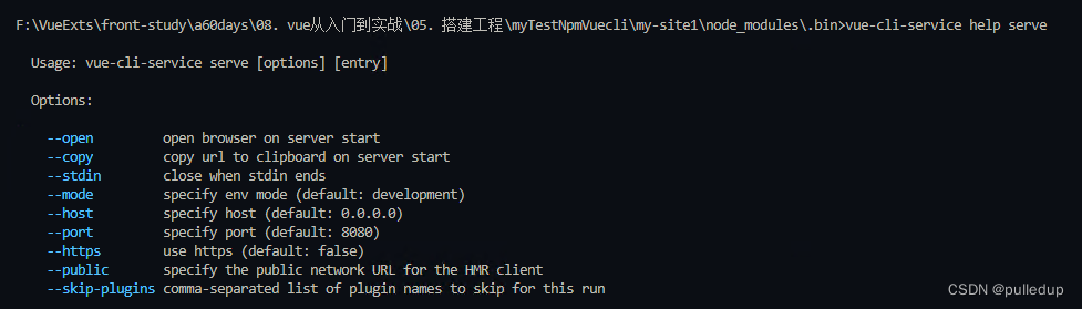 如 图3 所示,vue-cli-service.cmd文件,即 图1 所运行的实际脚本,运行其命令行帮助: