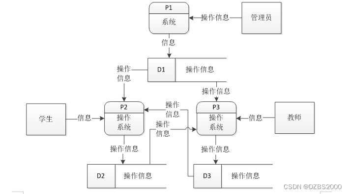 二层数据流程是对一层数据流层图中填写登录信息、用户功能的细化。即:填写登录信息细化为填制信息、后台审核,用户功能细化为教师资料修改、公告查看、学生选修录入、课程管理录入、教室查询、教室信息查询、等操作。