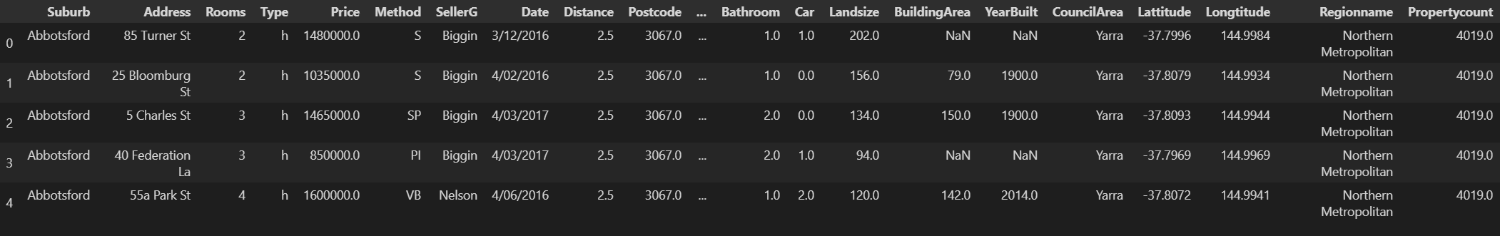 我们使用墨尔本房屋数据作为原始数据。这些数据包含以下变量: