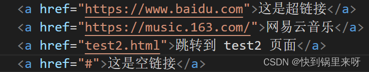 (2)内部链接:网站内的页面链接,写相对路径