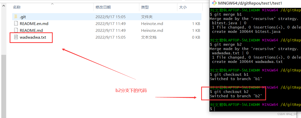 也就是说:把b1分支下的代码和b2分支下的代码合并到master分支当中去。
