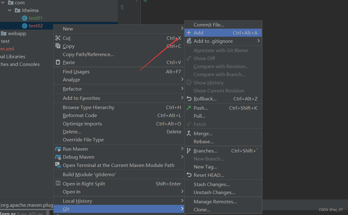 点击完Add后,即可将test02代码加入到暂存区进行保存了。