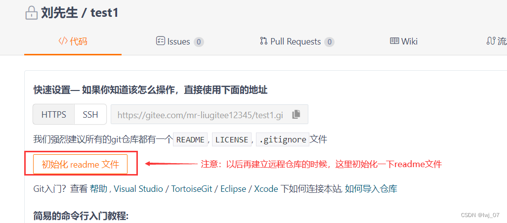 踩坑:一定要注意啊如果使用本地初始化仓库的方式然后将项目代码推送到远程仓库时,远程仓库千万别初始化readme文件