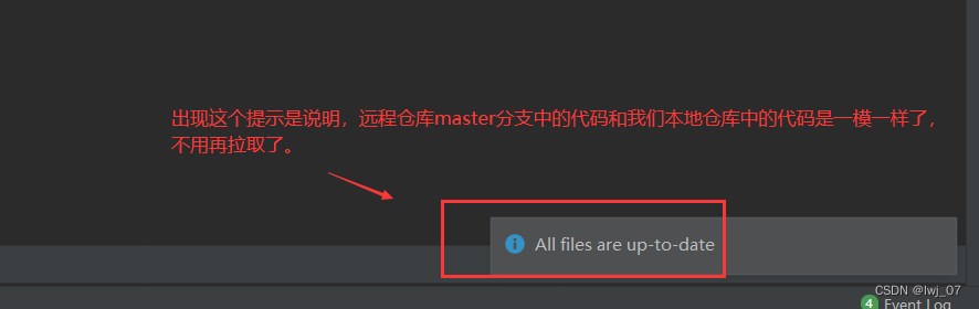 我们知道此时开发人员小黑的本地仓库中的数据是和远程仓库中的数据一致的,因此就拉取不出来数据了。