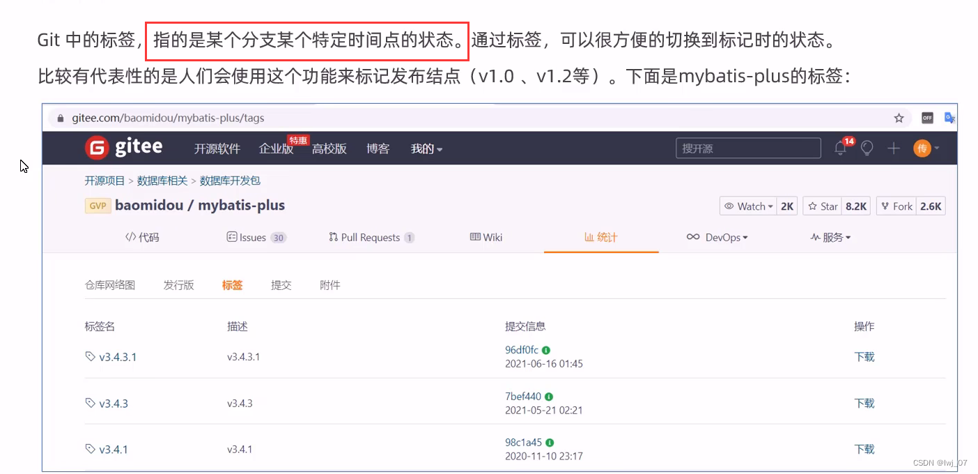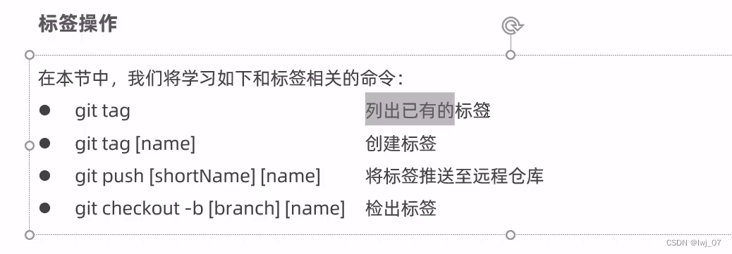注:为了防止标签和分支区分不开,因此标签用到再说。