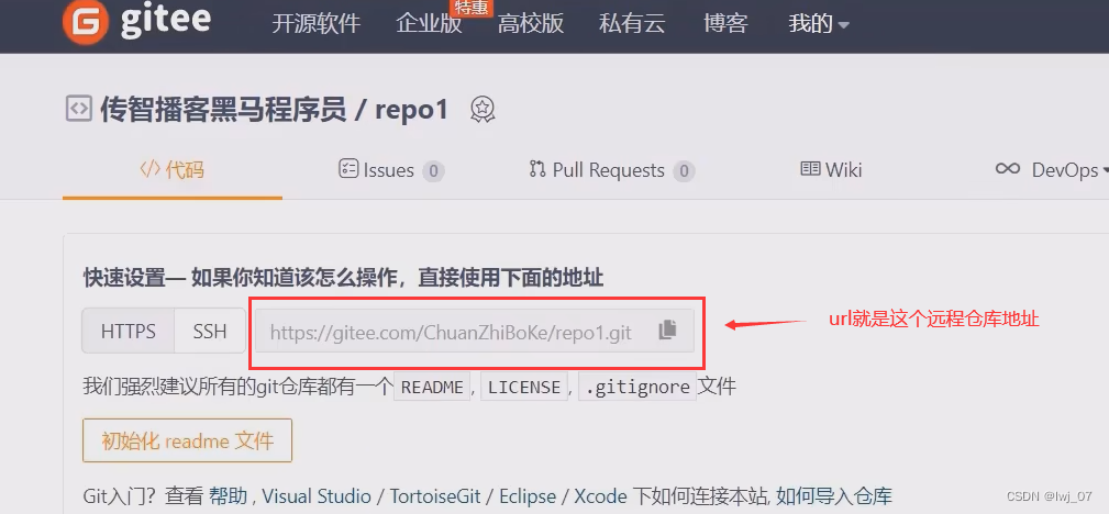 首先我们知道,在远程仓库中,我们每个创建的远程仓库都有一个地址:比如我们的hellogit远程仓库: