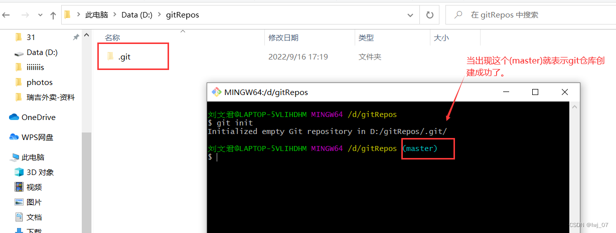 注意:我们本地的每个.git仓库都不能放在同一个文件夹下,如我们刚才用第一种方式创建的