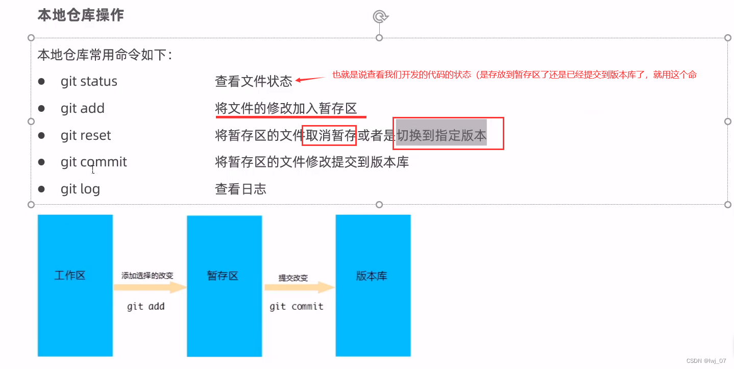 因此这也是我们初始化git仓库的时候,为什么拿项目名为本地仓库,就是因为我们以项目名的话,那么我们在这个项目中写的所有代码都相当于在工作区写的了,也就是说这些工作区中的代码都可以通过git ada命令存入到暂存区,然后到版本库最终推送给远程仓库进行保存管理了。