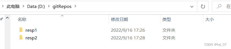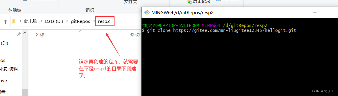 git仓库是在resp1目录下的,那么我们再创建/克隆仓库的时候,就不能再放在resp1目录下了。