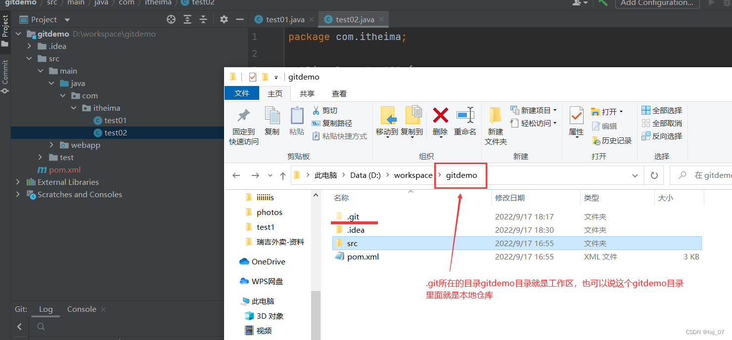 因此gitdemo目录下就是工作区,就可以说gitdemo就是本地仓库了。
