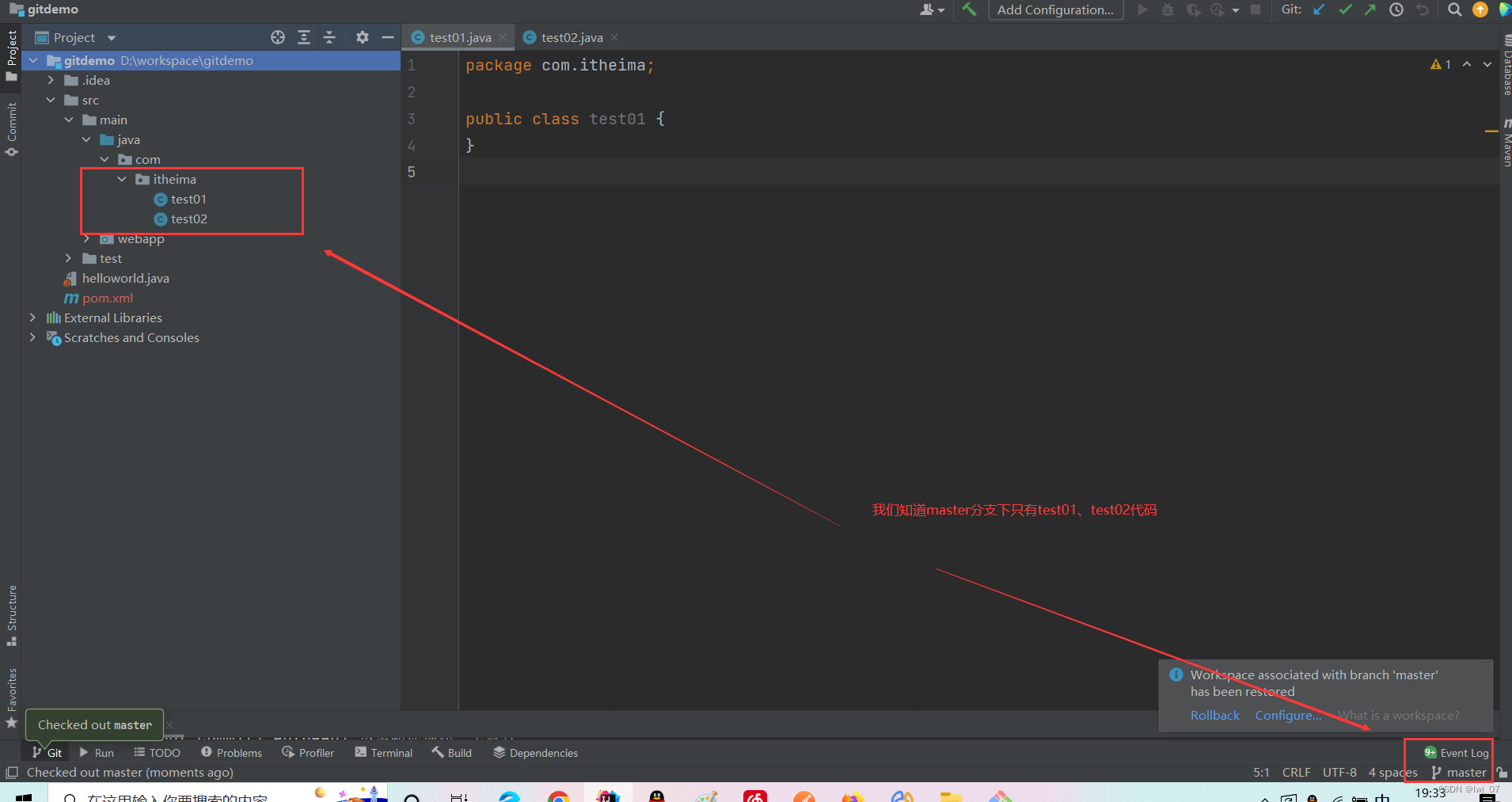 首先要先在命令窗口回到主分支master下: