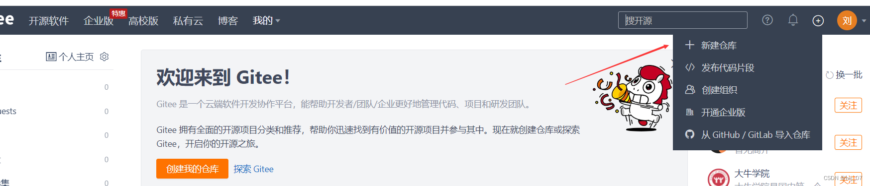 我们还可以在个人主页查看我们创建了几个仓库: