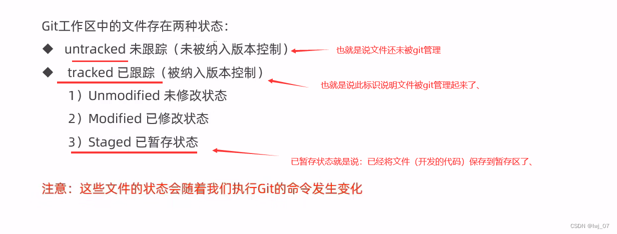 演示如下: 我们知道刚才我们的helloworld开发代码,还没有通过命令把开发的代码保存到暂存区,因此我们通过命令就可以查看一下该开发的代码状态: