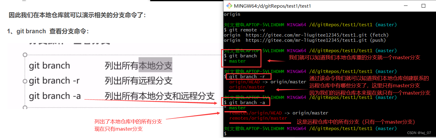 因此我们在本地仓库就可以演示相关的分支命令了: