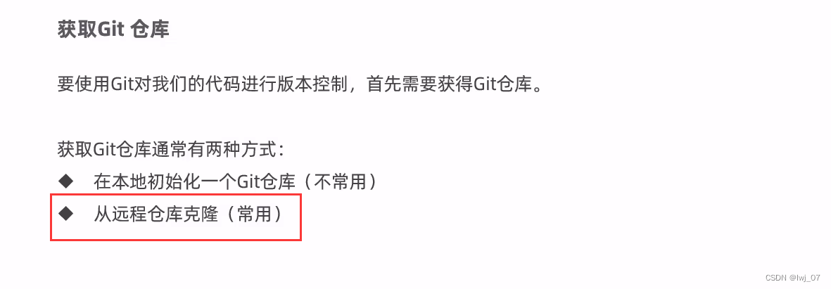 1、本地初始化仓库 2、从远程仓库克隆