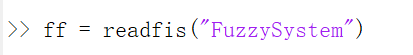 法② 或者使用readfis函数读取到工作区间,用工作区间的工作名称(不加单引号),以模糊系统文件名为FuzzySystem为例,如下: