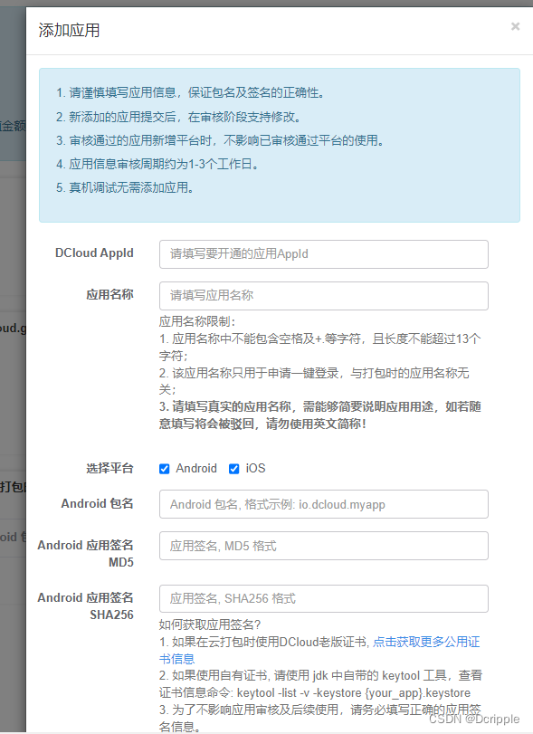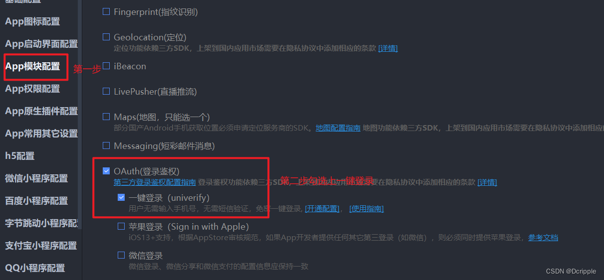 真机调试无需添加应用,如需打包使用请添加。一键登录应用ID为离线打包时配置的appid